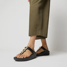 Dép sandal Fino của FitFlop có mũi dép thuôn nhẹ, đế dép được đệm nhẹ và phần ngón chân làm bằng da mềm. Công nghệ đế Microwobbleboard™ sáng tạo giúp giảm tác động và phân bổ áp lực, mang lại sự thoải mái vượt trội suốt cả ngày.