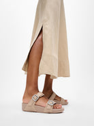 Phiên bản này được làm từ da trơn cao cấp, điểm nhấn là các khóa kim loại tinh tế đính pha lê lấp lánh – mang lại vẻ sang trọng, nhẹ nhàng, vừa đủ để bạn tỏa sáng trong các buổi tiệc, dạo phố tối hoặc chỉ đơn giản là muốn làm mới phong cách thường ngày.