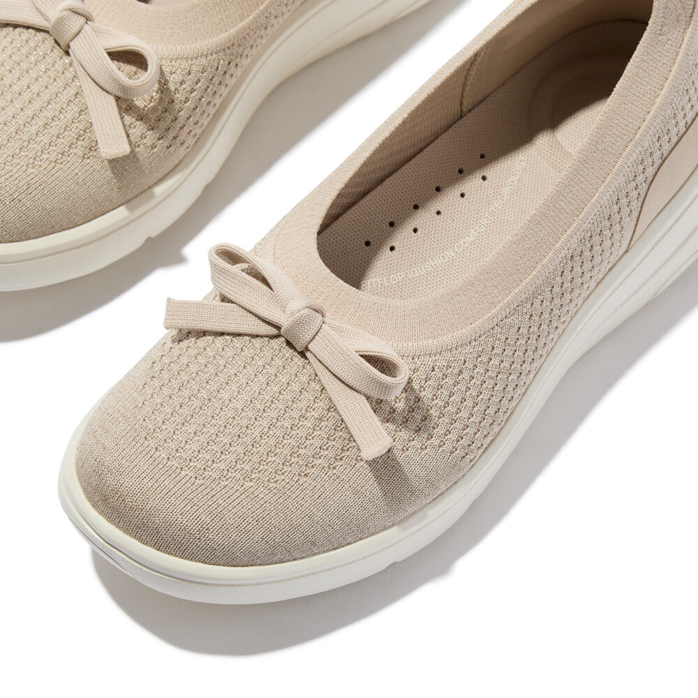 Phần thân giày ôm gọn bàn chân, được dệt liền mảnh với chất liệu nhẹ, mềm mại, co giãn tốt và thoáng khí – tạo cảm giác như “ôm trọn” bàn chân. Viền co giãn và tab gót giúp mang vào/tháo ra dễ dàng. Chi tiết nơ nhỏ, sợi dệt ánh kim đa dạng kết cấu và phối màu đồng điệu giúp đôi giày thêm phần cuốn hút. Bên dưới là đế giữa iQushion™ phiên bản Super-Q – sử dụng công nghệ đệm bọt khí siêu nhẹ, siêu linh hoạt và đàn hồi tốt cho cảm giác chuyển động tự nhiên, linh hoạt và tràn đầy năng lượng.